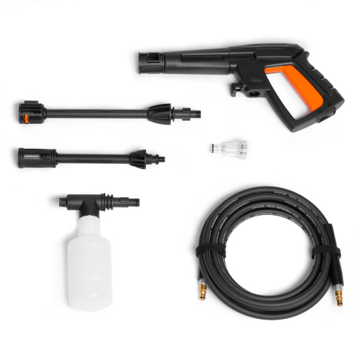 Задать вопрос Задать вопросДобрый день. В комплектацию входит: пистолет, шланг высокого давления, распылительная насадка на пистолет, пенокомплект.